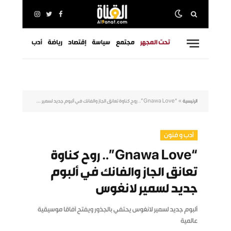 " For Samir LanGus, the body-moving drone of Gnawa music can be a point of departure as much as a spiritual tradition. Gnawa is the musical heritage of Morocco's sub-Saharan African people, many of whom were transported there in bondage hundreds of years ago from points south. Before the blues was carried across the Atlantic, a version of it moved north, by way of Mali, and became Gnawa. (Really, rock 'n' roll sounds as similar to this as to the blues.) LanGus plays the guembri and sings in a relatively traditional mode, maintaining the rugged push of Gnawa music, but above that he stacks sharper sound objects 20th-century-modern piano chords; a trumpet; high, women's voices echoing his own. He says that his songs mirror the mélange that he grew up around in the coastal city of Agadir. "
